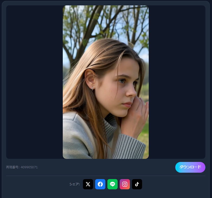 生成された動画が表示されるエリアです。プレビュー・ダウンロードもここから。